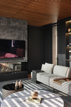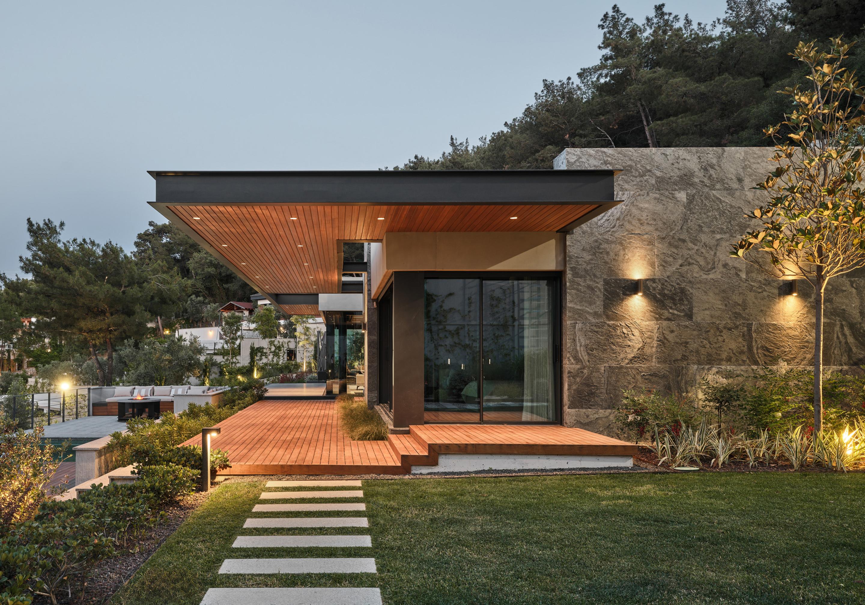 Located on a steep and rocky 2,500 m² plot, G House is conceived as a single-story compact dwelling, positioned on a partially leveled area previously intervened by former landowners. The untouched portions of the site have been preserved and shaped with a landscape design approach that prioritizes the site’s existing olive trees and natural topography. This sensitive integration not only reinforces the house’s harmony with its environment but also offers residents a living experience deeply connected to the landscape.