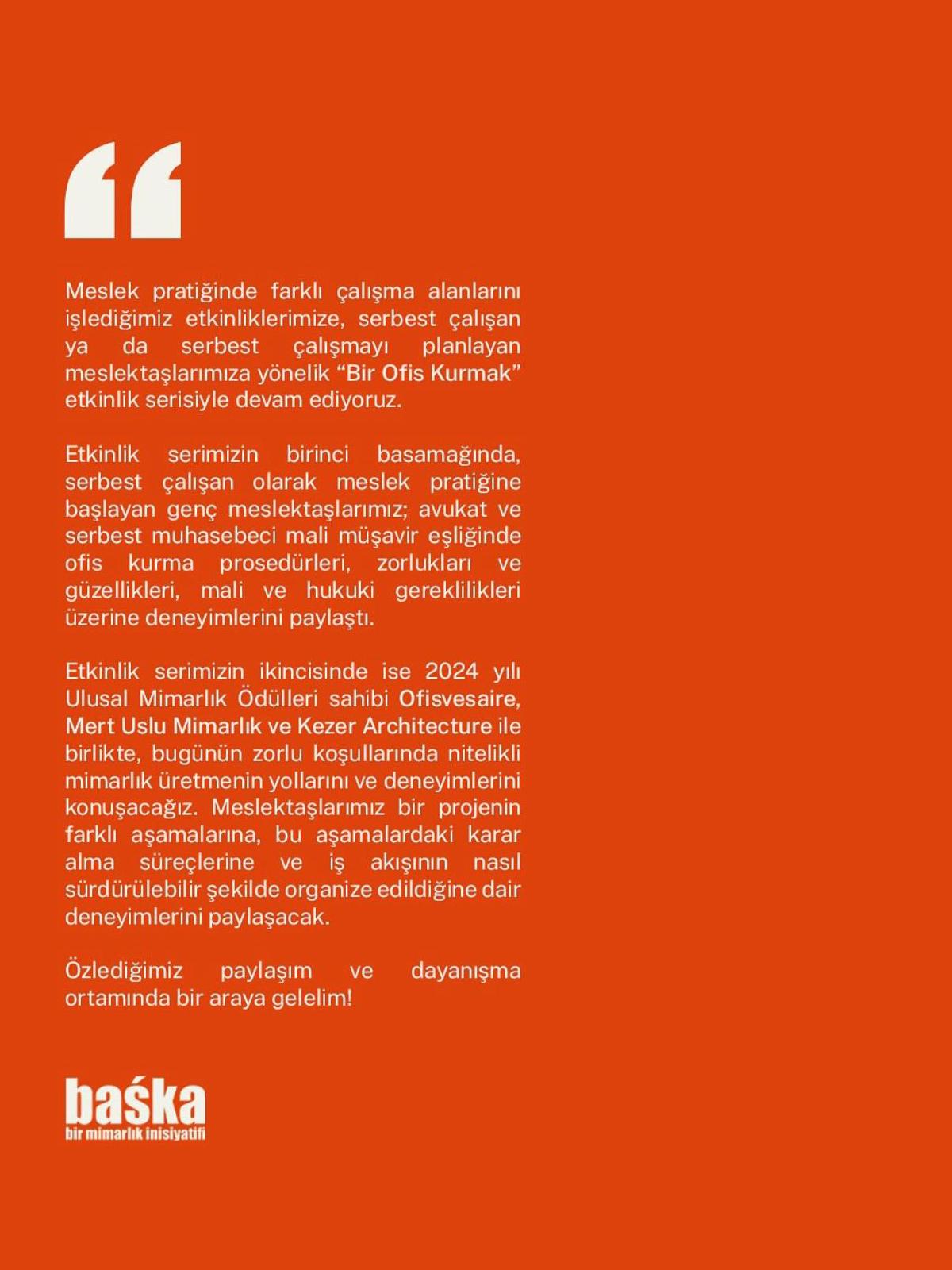 "To establish an office II" Panel Nov. 19, 2025 Melis Varkal participated in the panel discussion "To establish an office II" by Another Architecture Initiative Panel