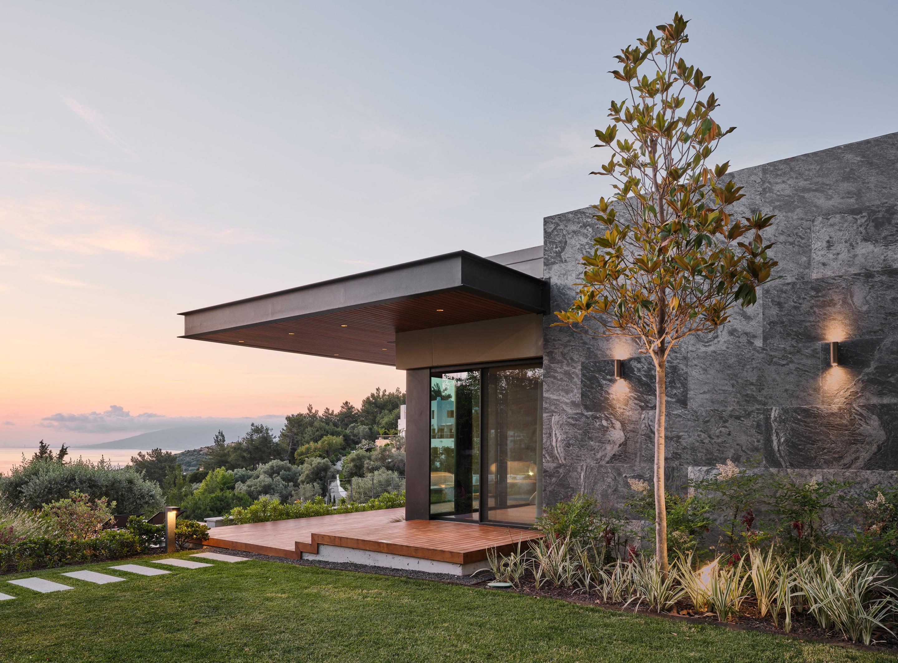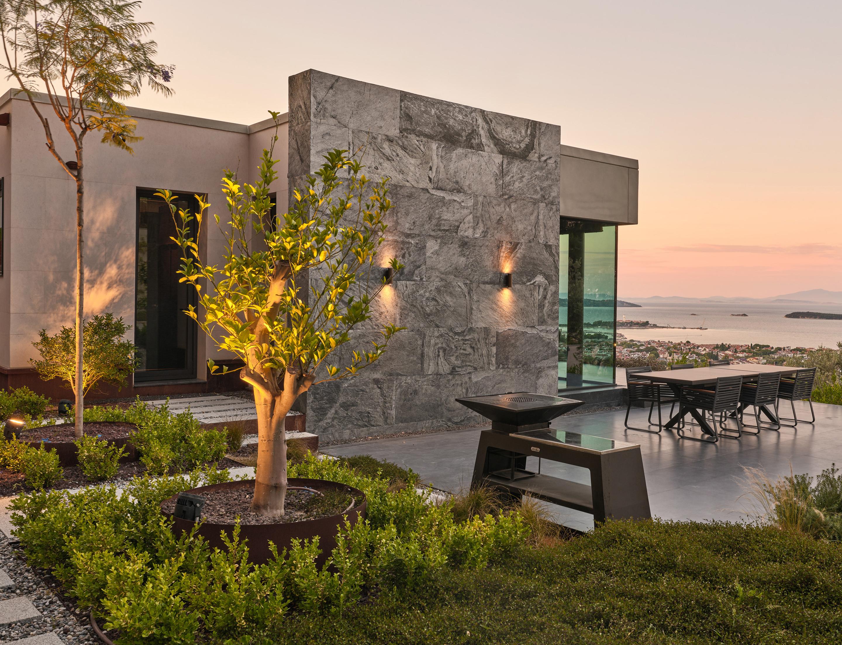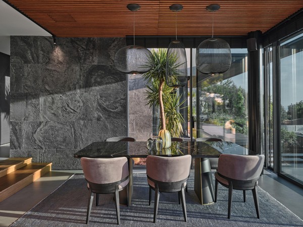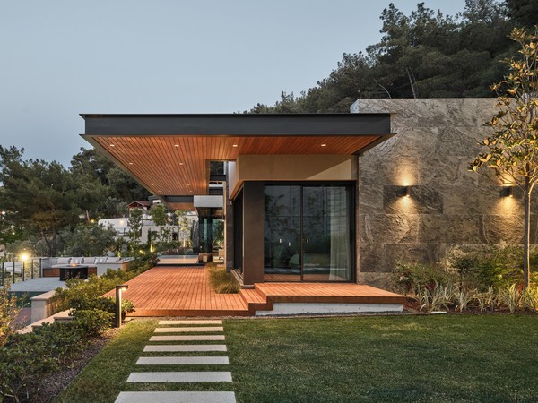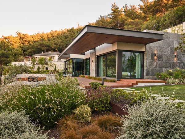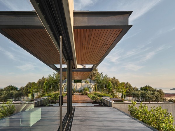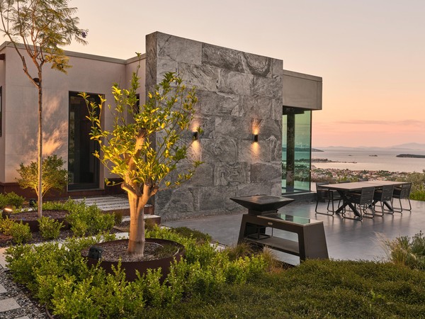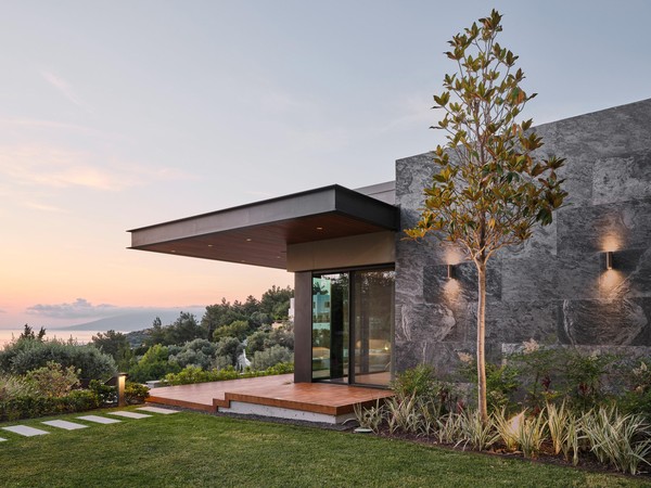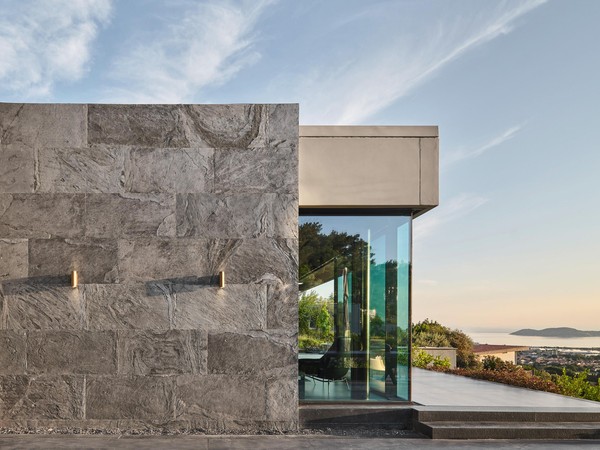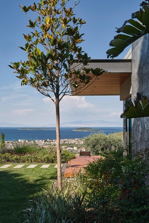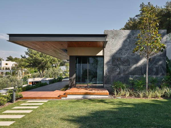 Located on a steep and rocky 2,500 m² plot, G House is conceived as a single-story compact dwelling, positioned on a partially leveled area previously intervened by former landowners. The untouched portions of the site have been preserved and shaped with a landscape design approach that prioritizes the site’s existing olive trees and natural topography. This sensitive integration not only reinforces the house’s harmony with its environment but also offers residents a living experience deeply connected to the landscape.