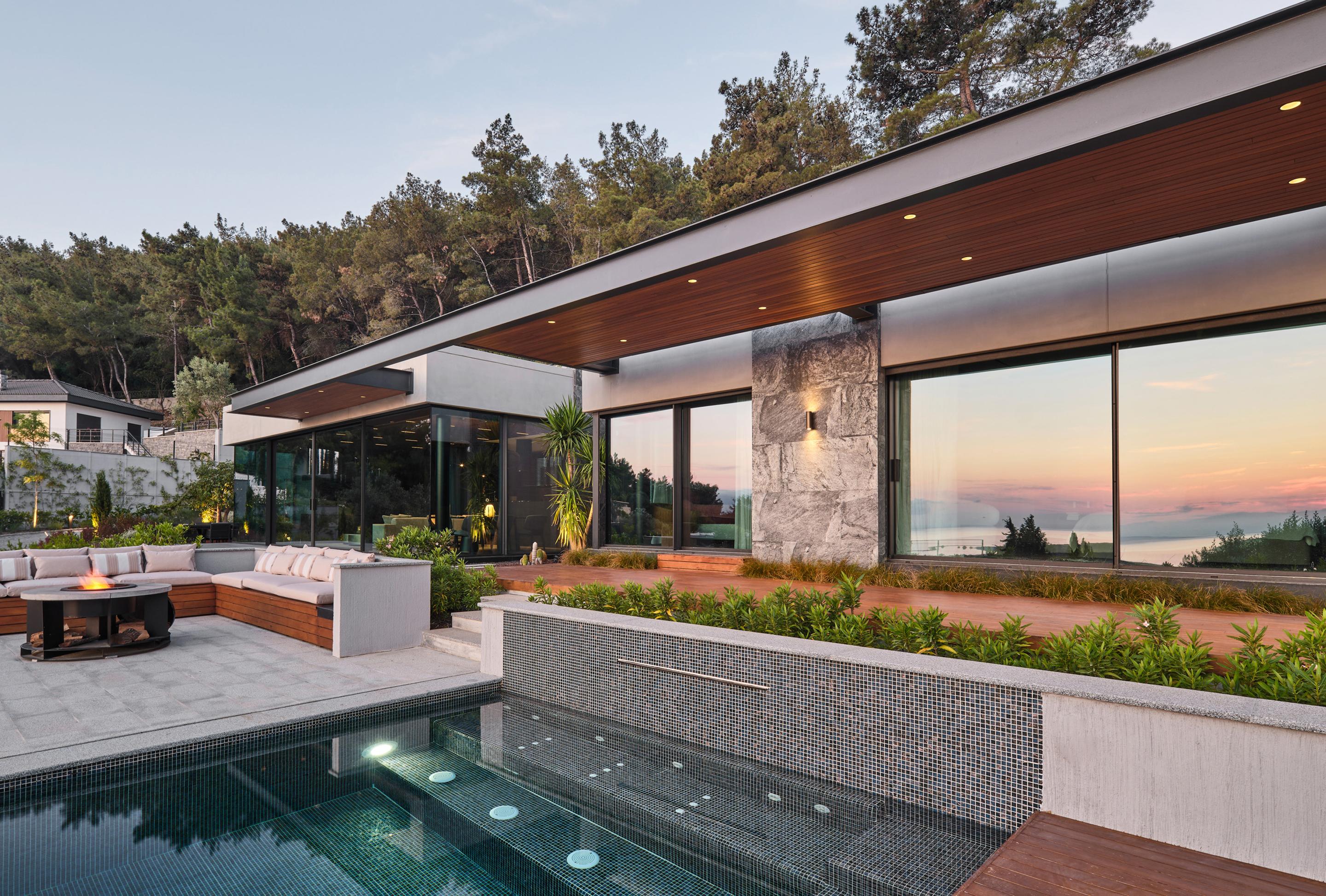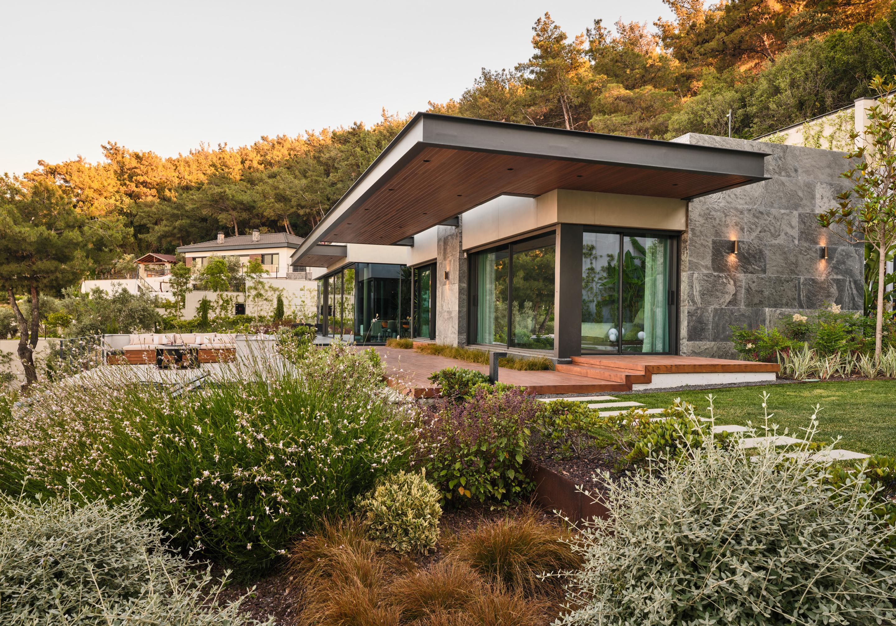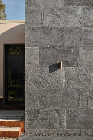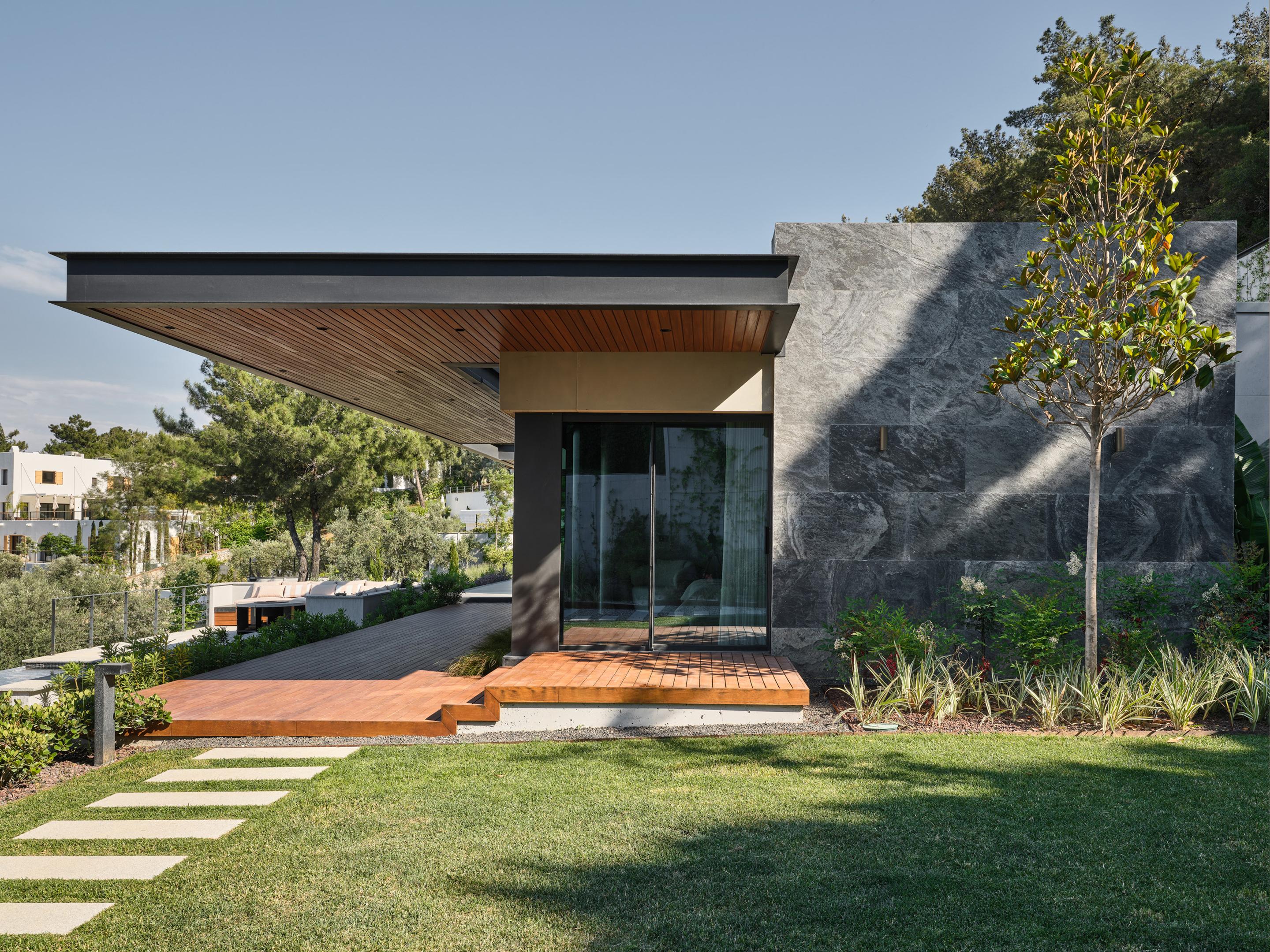 Located on a steep and rocky 2,500 m² plot, G House is conceived as a single-story compact dwelling, positioned on a partially leveled area previously intervened by former landowners. The untouched portions of the site have been preserved and shaped with a landscape design approach that prioritizes the site’s existing olive trees and natural topography. This sensitive integration not only reinforces the house’s harmony with its environment but also offers residents a living experience deeply connected to the landscape.