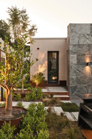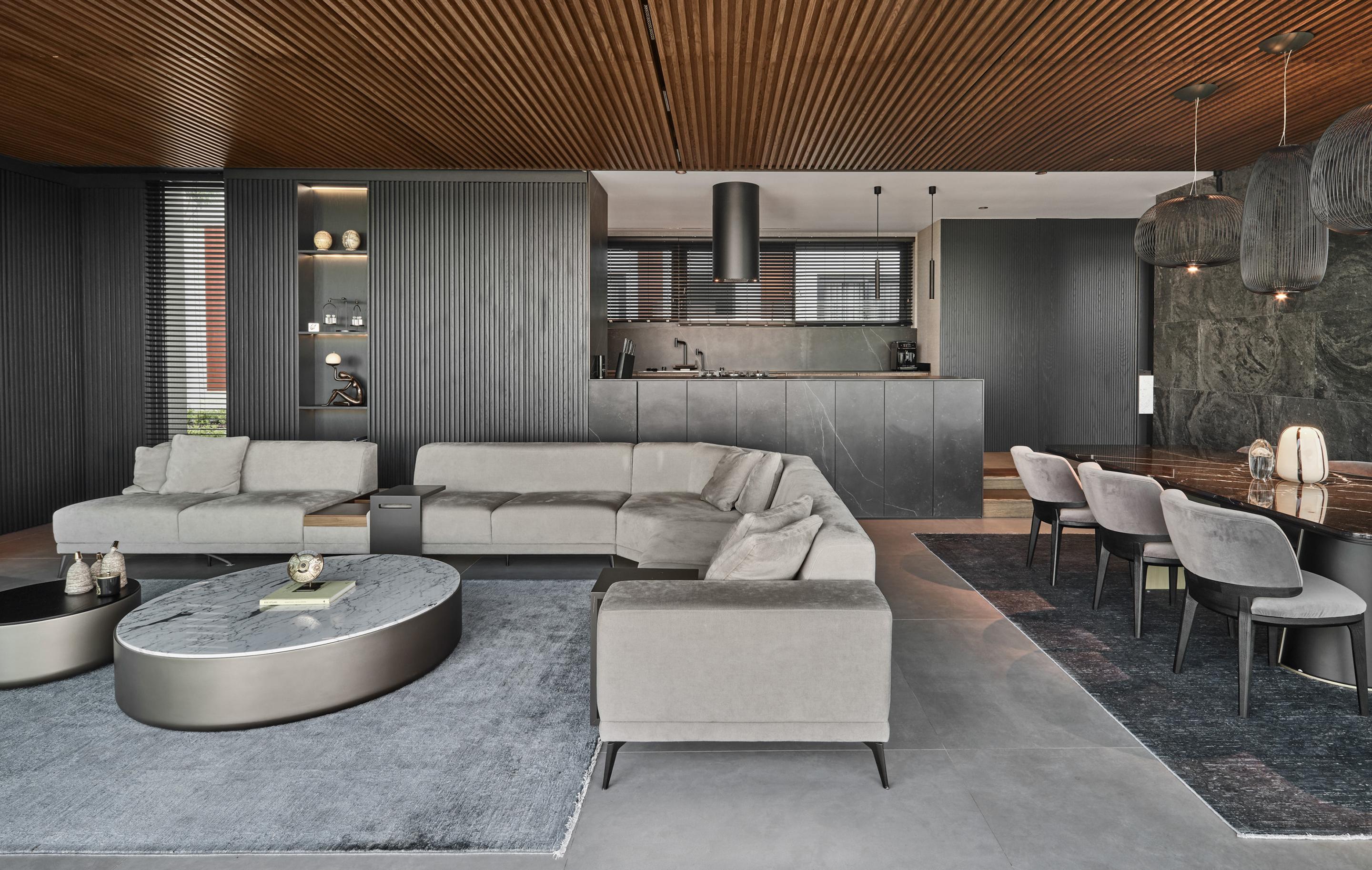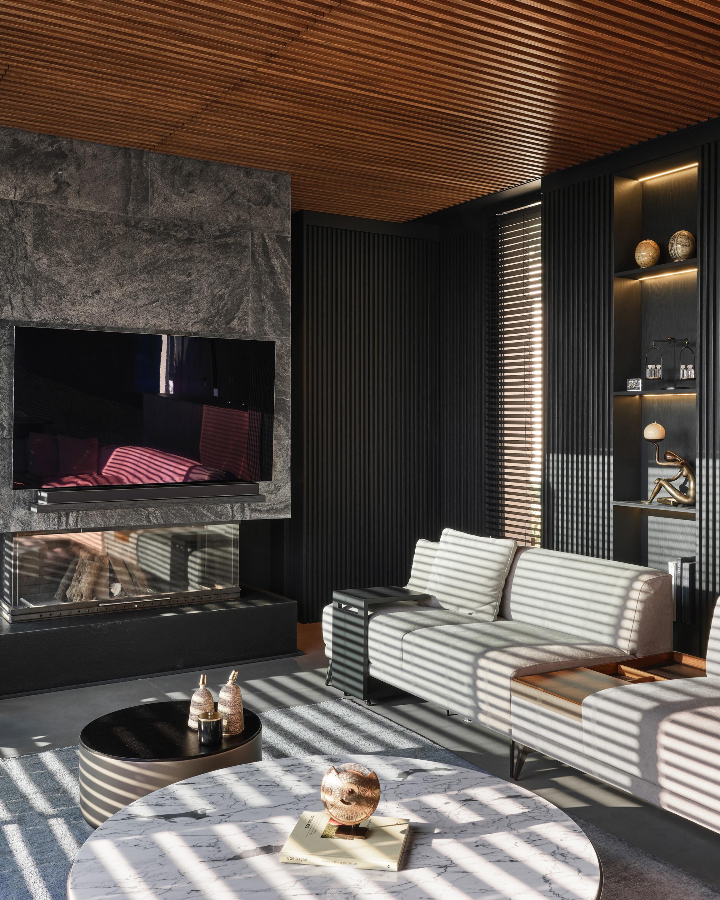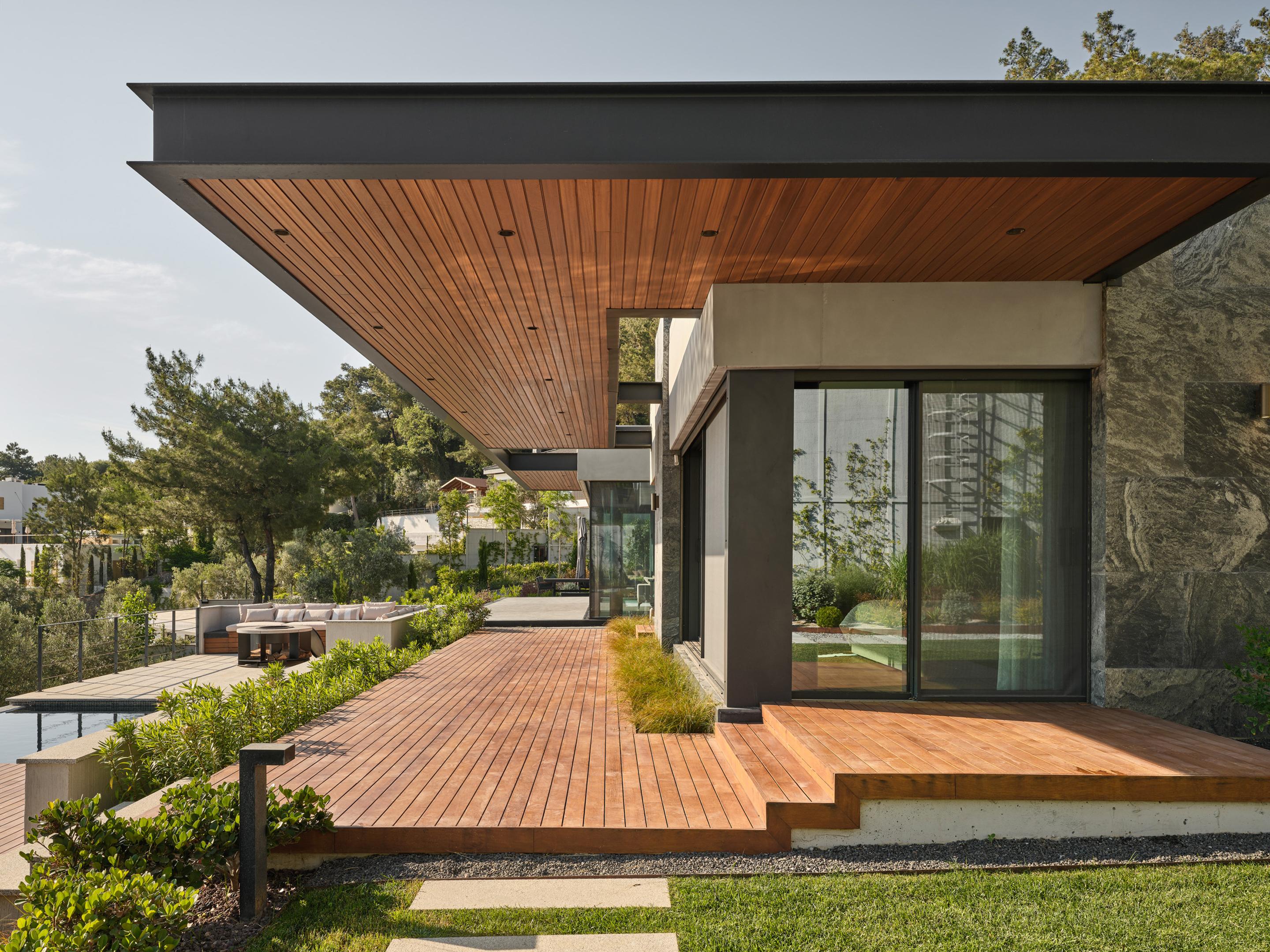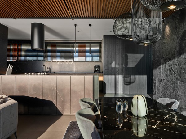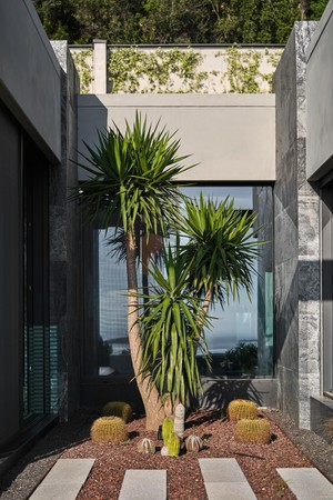 Located on a steep and rocky 2,500 m² plot, G House is conceived as a single-story compact dwelling, positioned on a partially leveled area previously intervened by former landowners. The untouched portions of the site have been preserved and shaped with a landscape design approach that prioritizes the site’s existing olive trees and natural topography. This sensitive integration not only reinforces the house’s harmony with its environment but also offers residents a living experience deeply connected to the landscape.