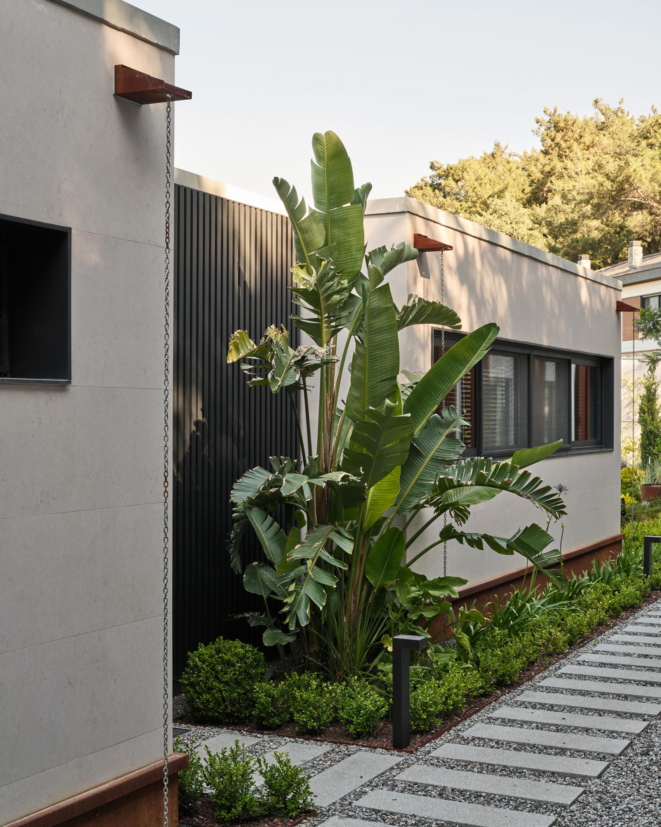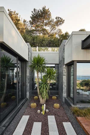 With a closed area of approximately 200 m², G House brings together the essential functions of living in a simple and efficient layout. Facing the main view, the building splits into two volumes: one for living, the other for resting. Between them lies a calm courtyard that welcomes visitors at the entrance, acting as both a spatial threshold and a pause that opens toward the landscape.